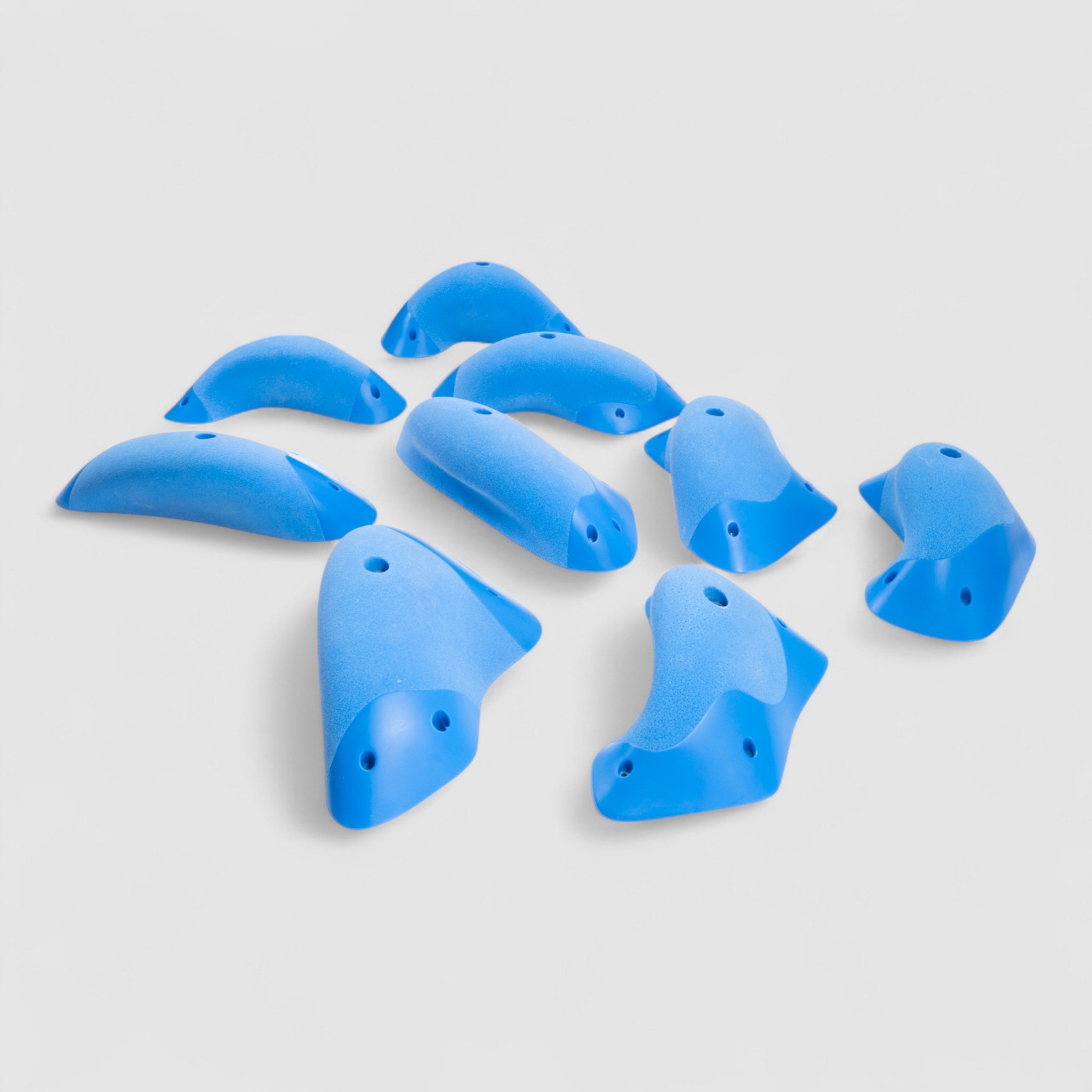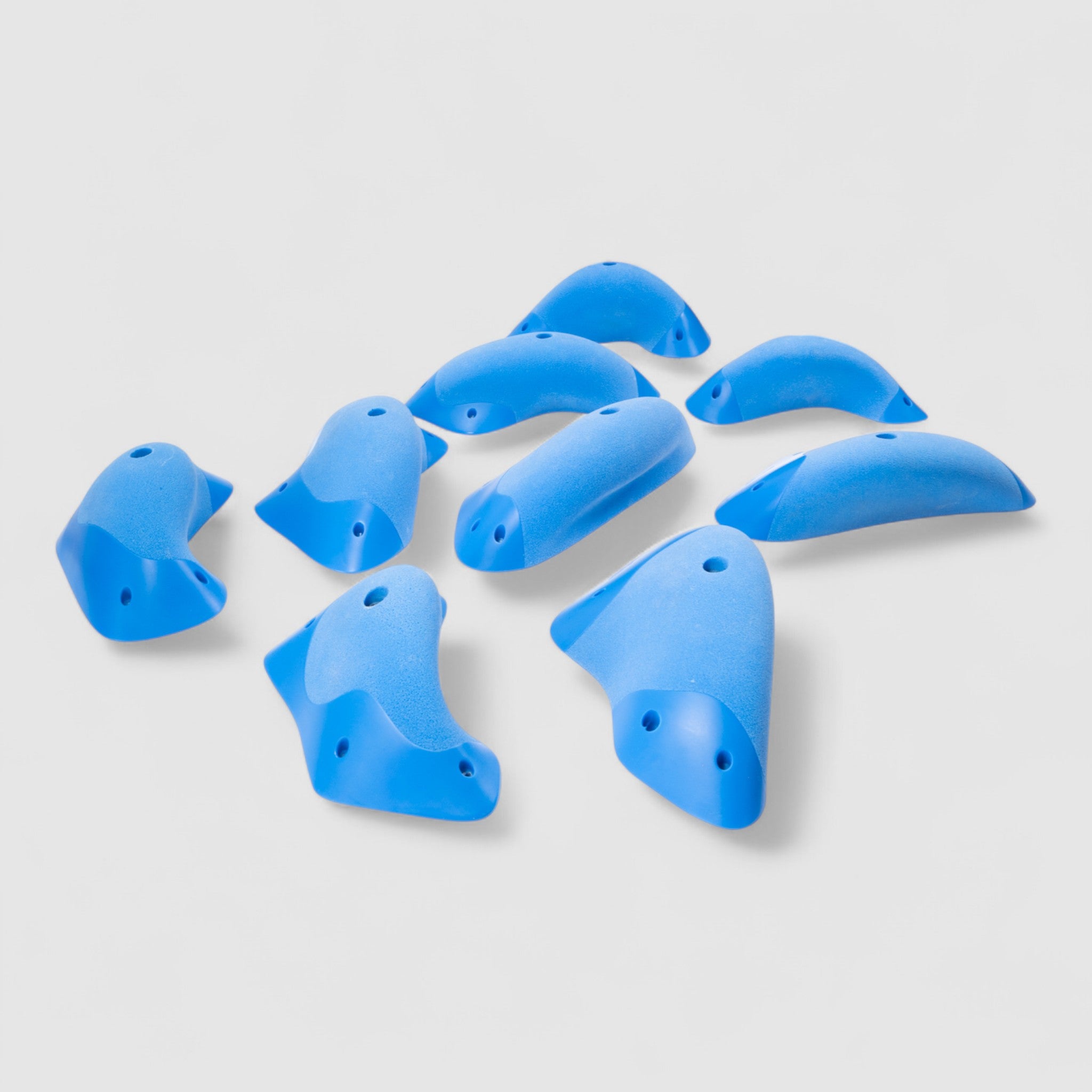 A set of mirrored, matchable ledges. Ranging from very incut to slightly incut, these holds are comfort-forward with generous edge radii and noticeable sweet-spots that will feel like full-handed jugs or sloper-jugs depending on use.