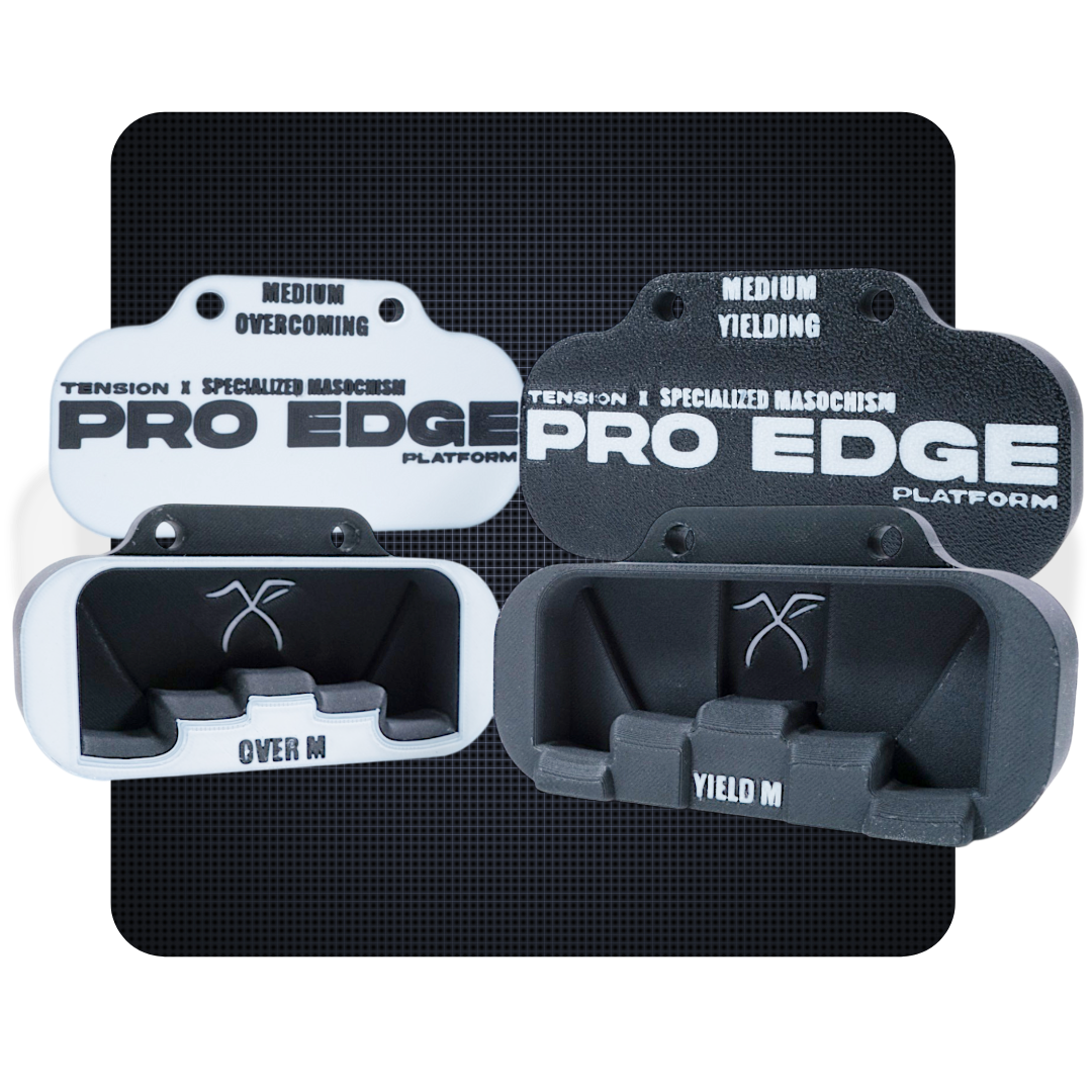 - Yielding Edge: Featuring a varied depth, height, and elevation for all four fingers as well as a subtle incut for feedback on maintaining grip position. This edge excels with yielding exercises, such as off the ground lifts or overhead pulldowns. Edge ranges 18-22mm depending on size chosen.