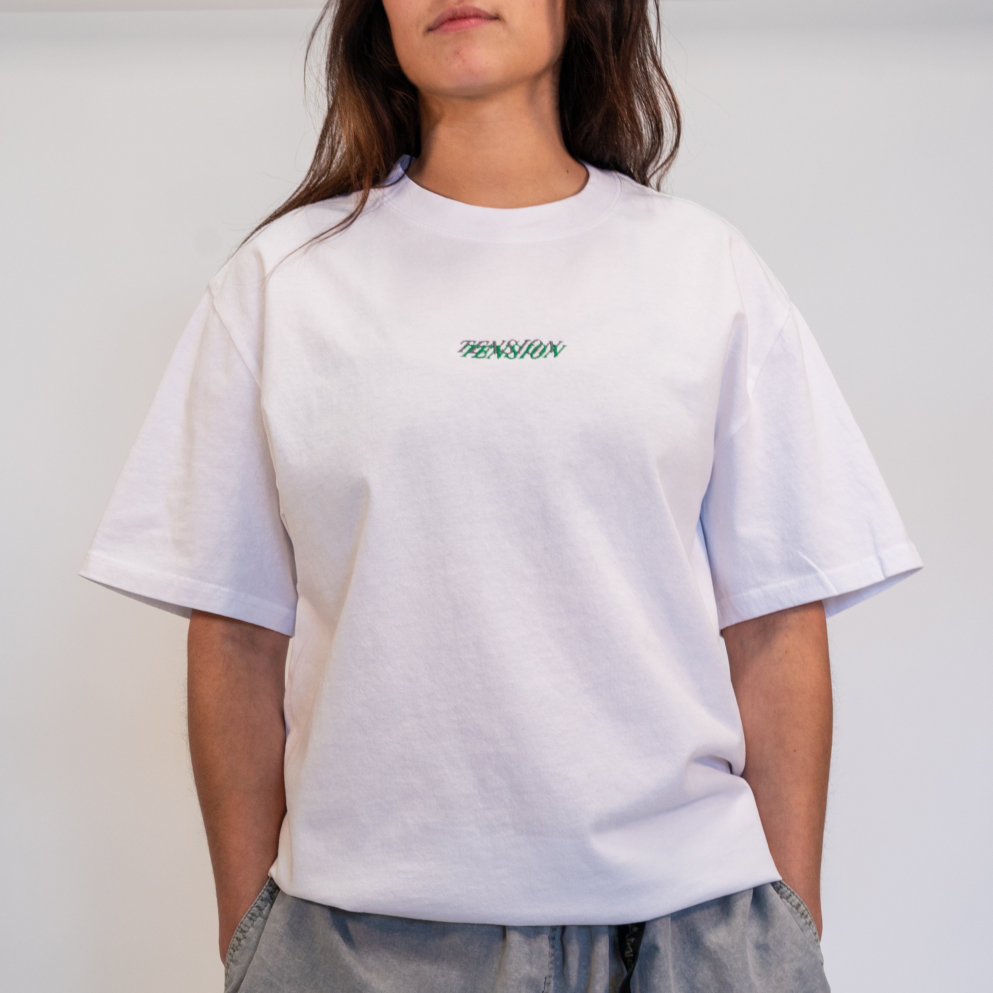 Our standard heavy weight tee featuring a simple and clean stacked, dual-color embroidery on mid-chest.