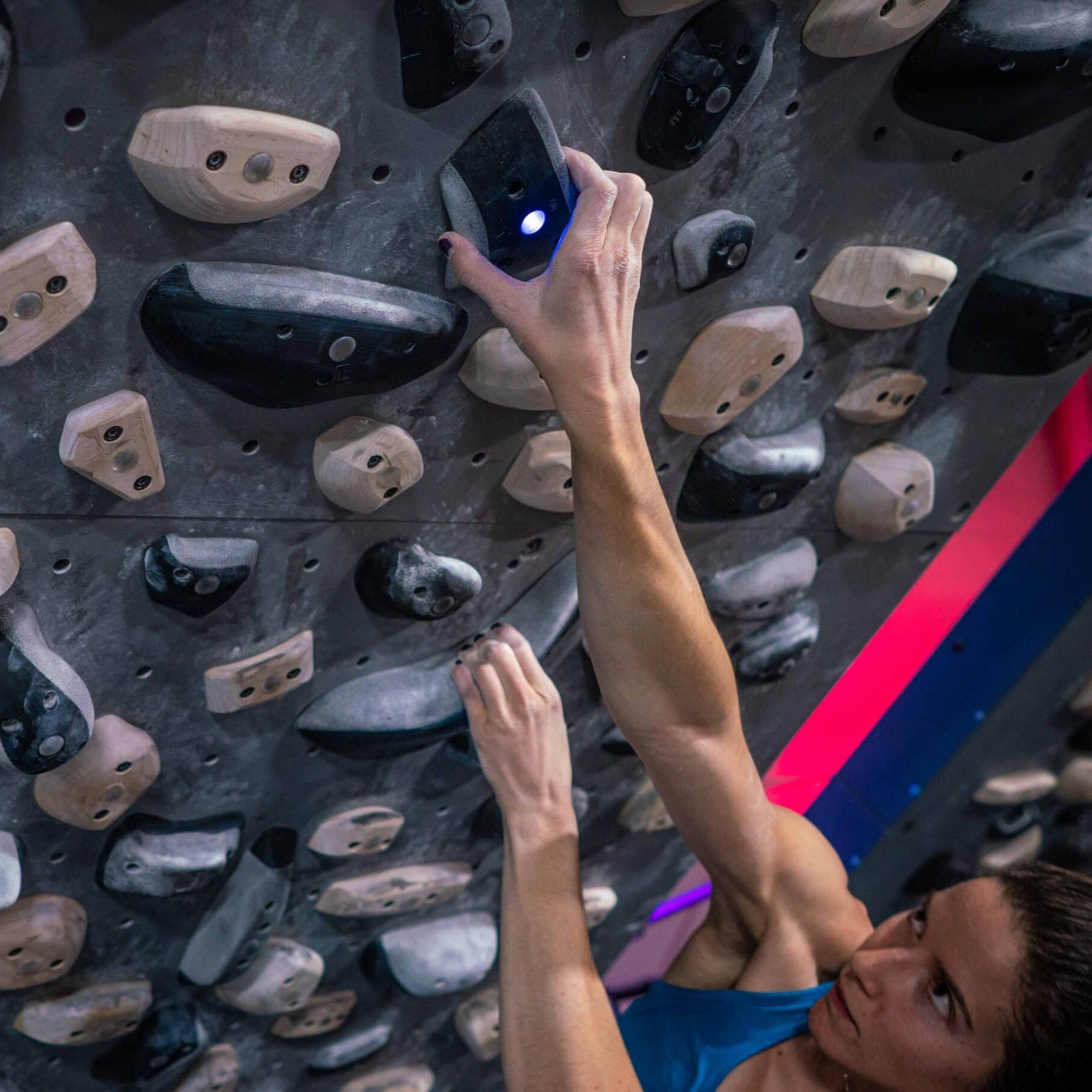 Created in collaboration with Mimic Holds, the TB2’s dual-texture polyurethane holds were shaped using contemporary 3D printing methods.
